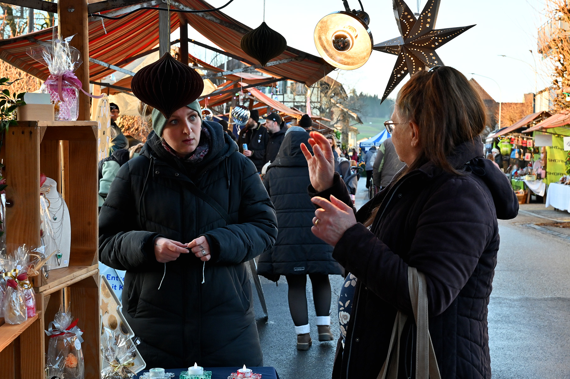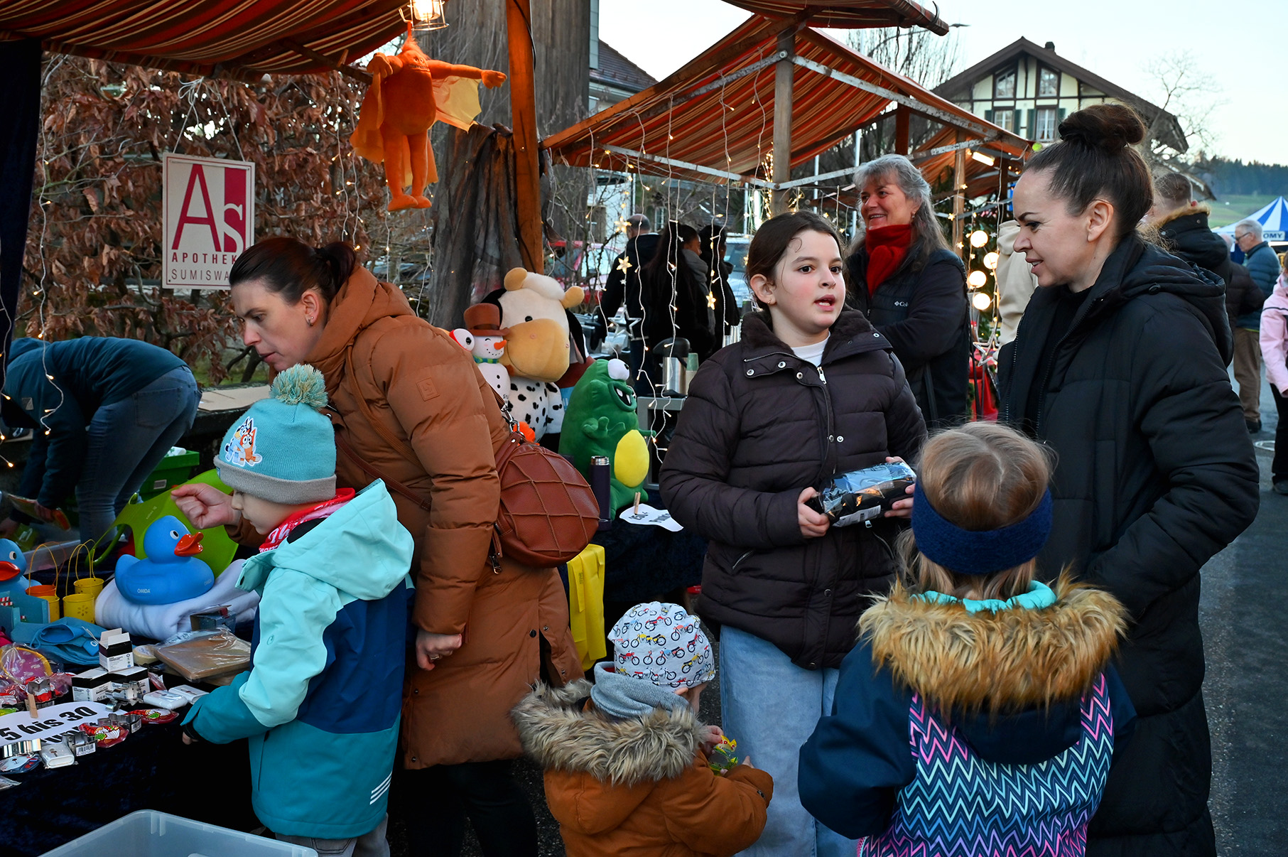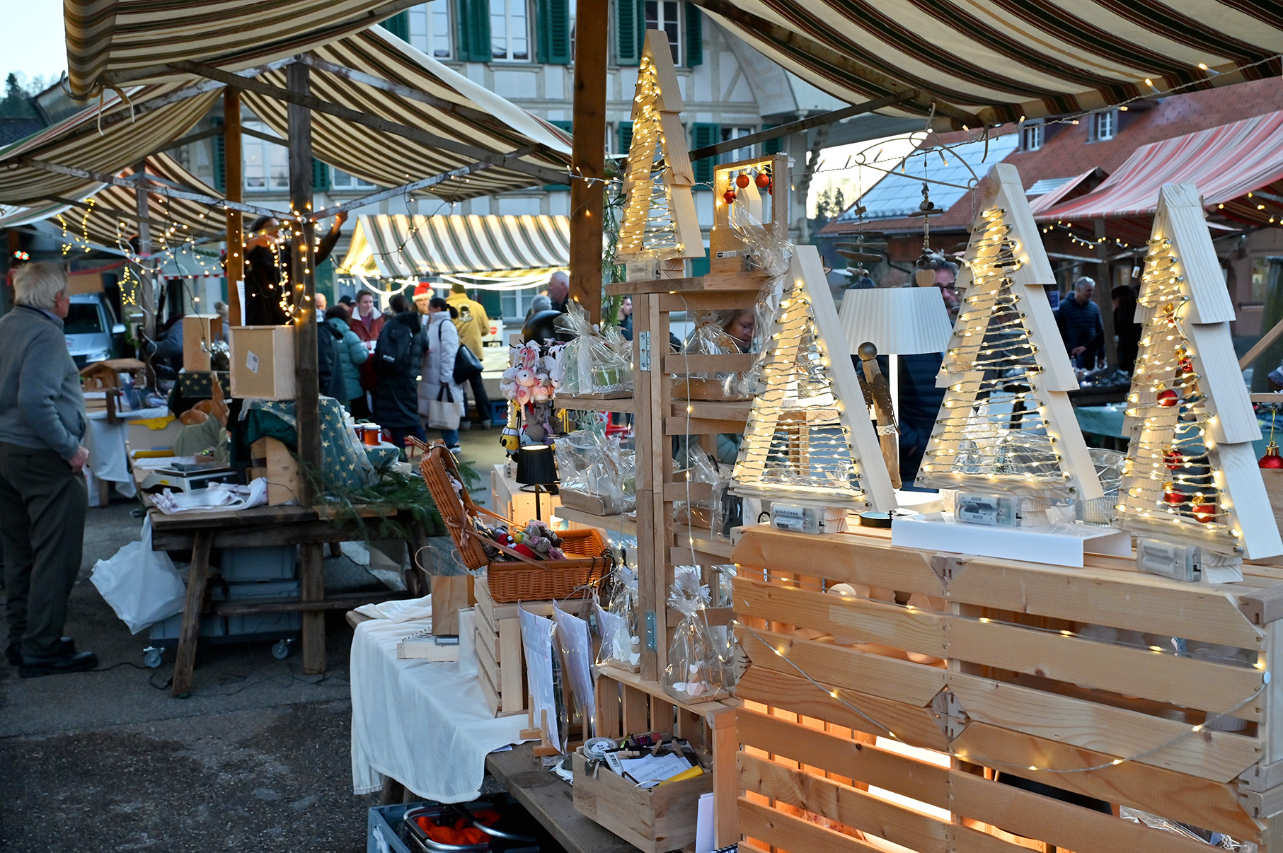 Viele Weihnachtsmärkte in der Region luden in der Adventszeit zum Verweilen, Staunen, Geniessen und Einkaufen ein. Es duftete nach Glühwein, gebrannten Mandeln und frisch zubereiteten Spezialitäten. Zahlreiche Hobbykünstlerinnen und -künstler präsentierten ihre handgefertigten Werke – von filigranen Holzschnitzereien bis zu sorgfältig gestalteten Karten und Dekorationen. Regionale Unternehmen boten Käsespezialitäten an. Caterer und Vereine sorgten für kulinarische Genüsse in vielfältiger Auswahl. Die Märkte boten Gelegenheit, sich mit Freundinnen, Nachbarn oder zufällig vorbeikommenden Gästen auszutauschen. Zwischen Lichterglanz und Tannenzweigen ergaben sich fröhliche Begegnungen und ein Gefühl von gemeinsamer Vorfreude auf Weihnachten.